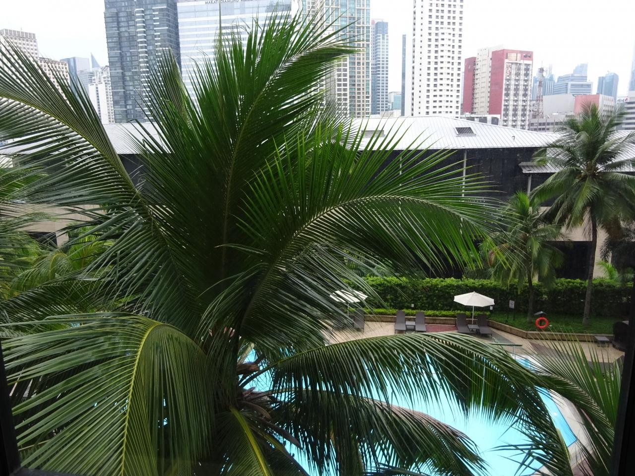 窓からの景色。イメージ的に北斗の拳のような荒涼たる風景が広がっているのかと思いきや、フィリピン、大都会である。 -