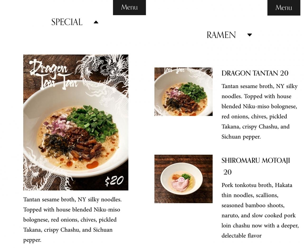 ラーメン店【一風堂】ウエストサイド店のメニューの写真。