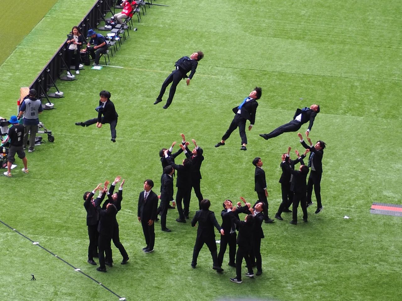 ハーフタイムはなにやら黒づくめのお兄さんのパフォーマンスが。