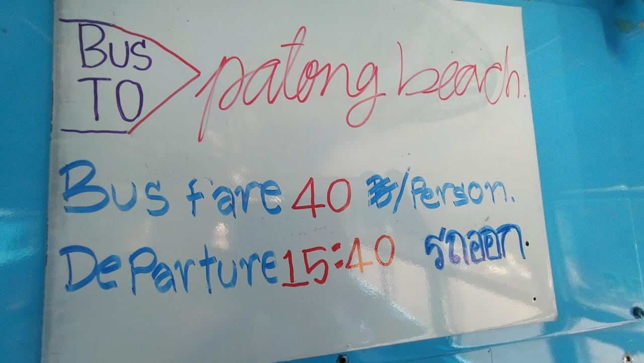 行先:パトンビーチ、料金:40バーツ、出発:15時40分