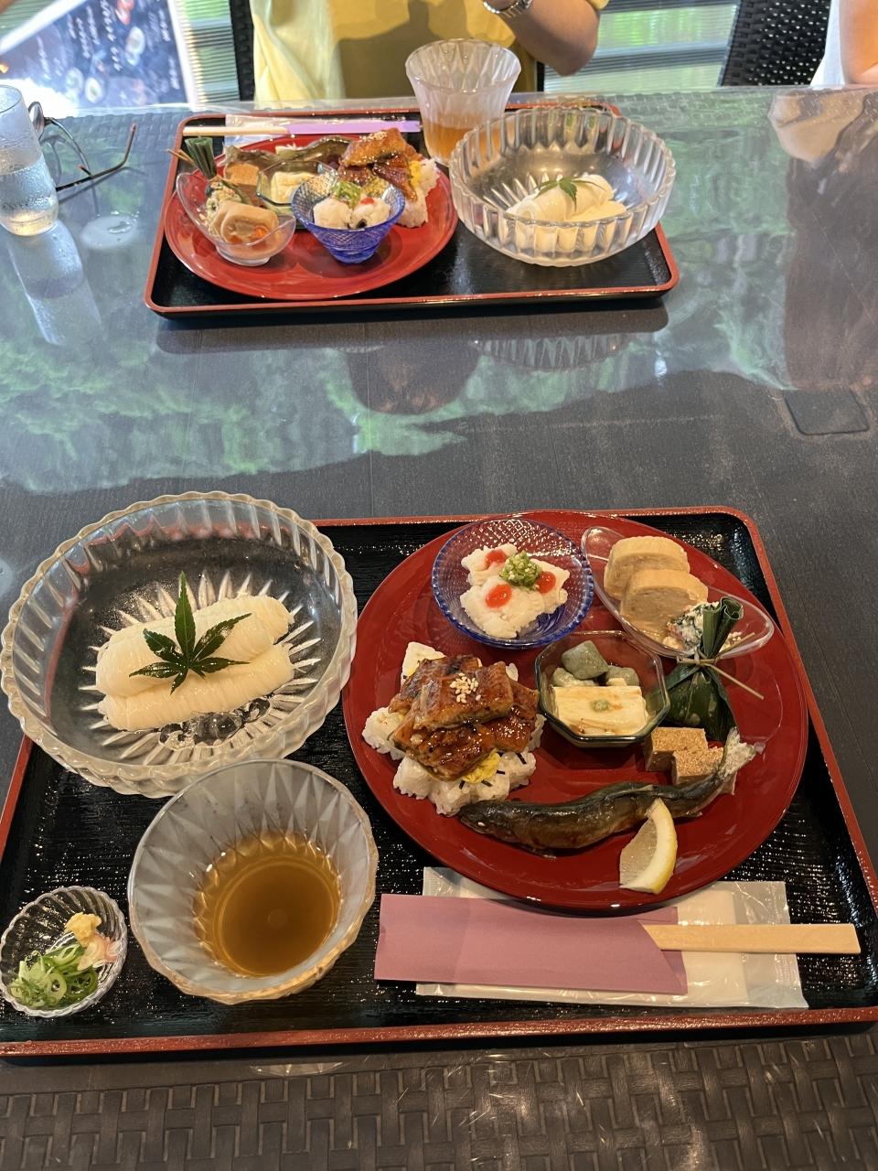 こちらの川床で食べるはずだったけど、雨でテラス席に変更になり残念。本当に川のすぐ上にあって、川を流れる水を触れそうでした。古今藤や グルメ・レストラン
