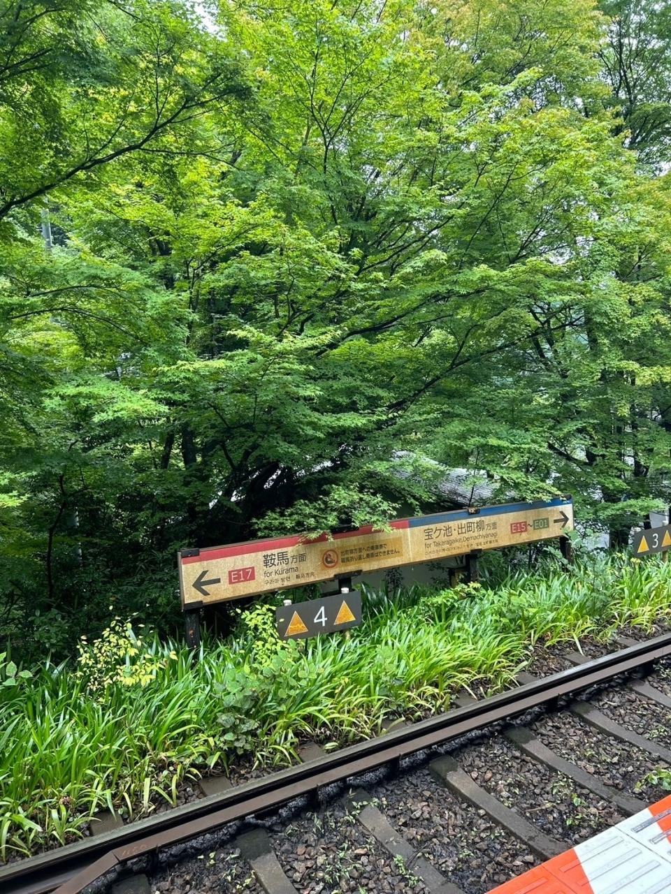 駅のホームも緑に囲まれている感じでした。貴船口駅 駅