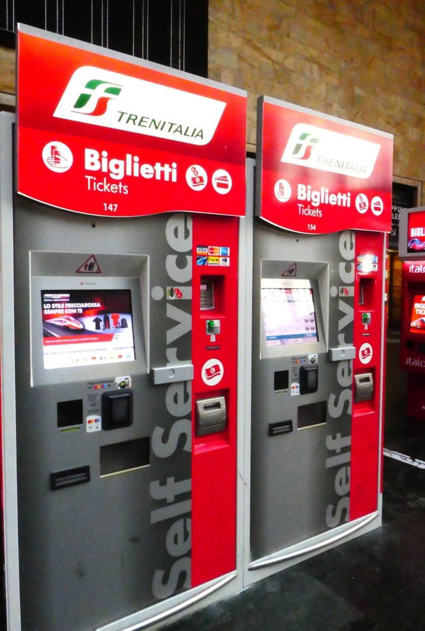 昨日、ホテルのオーナーさんに「器械だといろいろと面倒で、いつも窓口に行っちゃうんですよね」などと聞いていたので、窓口も探してみたものの、結構、列ができているので、誰も並んでない器械で買うことに。フィレンツェ サンタ マリア ノヴェッラ駅 駅