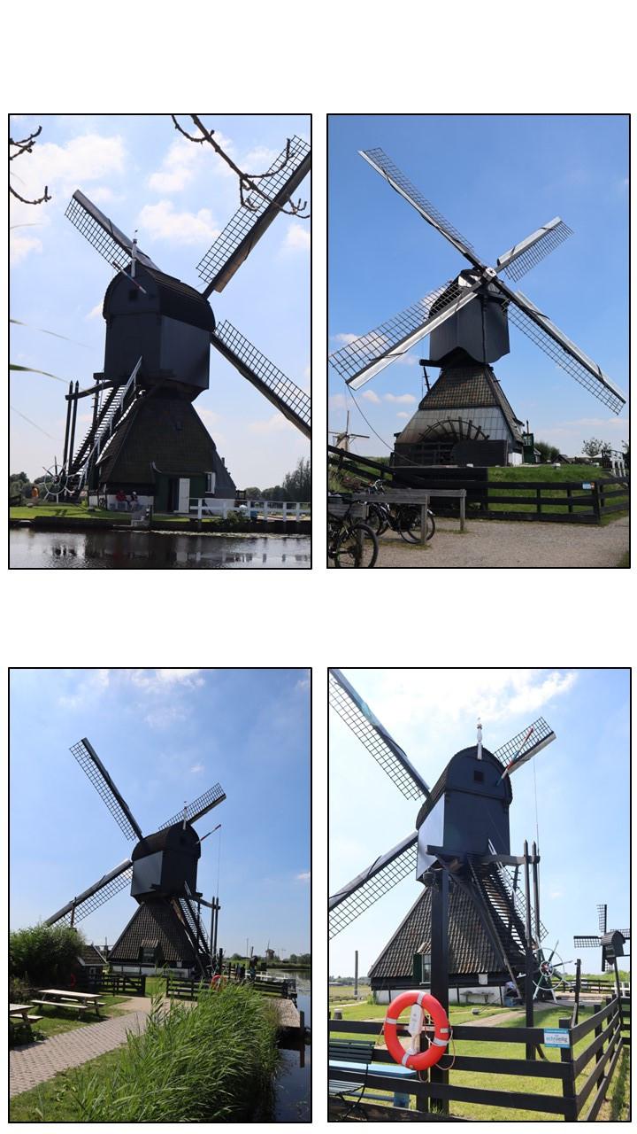 > 街中のニーウェ・マース川を移動してキンデルダイクに到着すると、街中から一転、別のボートに乗り換えてのどかな風車の風景が見れるのも凄いと思いました。