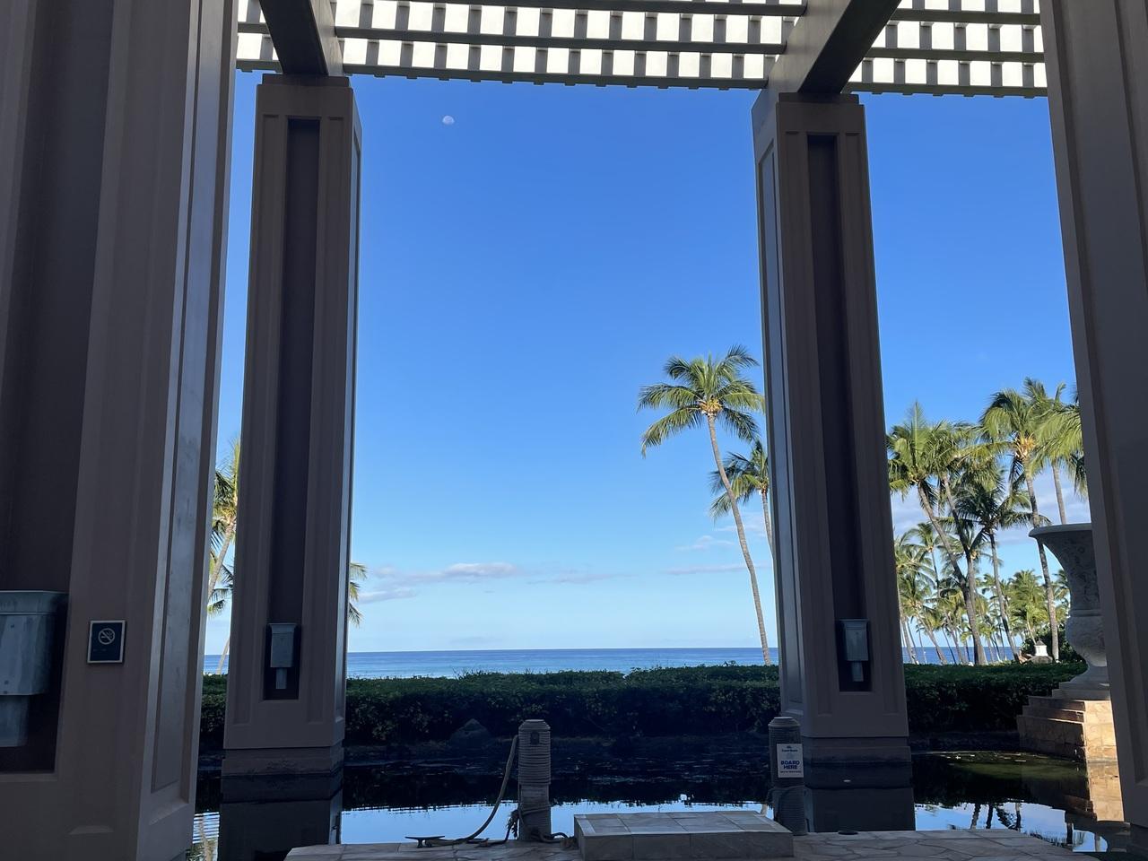 ご覧の通り、ゴルフ場ビューなんですが、後ろには、マウナロア山が見れます。Hilton Waikoloa Village ホテル