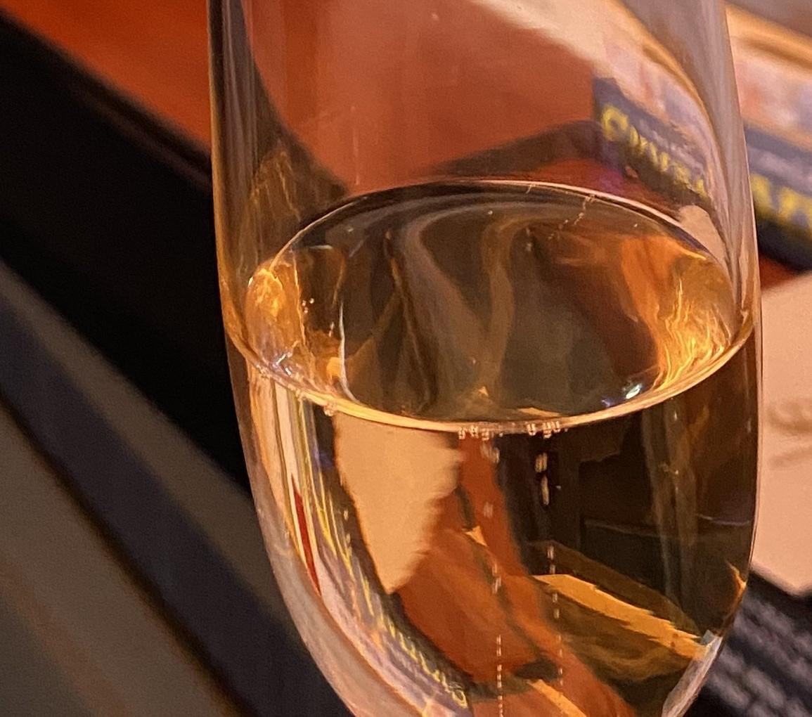 ワイングラスでいただくのは、ロイヤルルブルーティー
