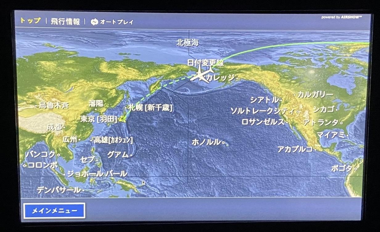 そうなんです。もっと前から気づいていたのですが、アイスランド上空を飛んでいて、CAさんに尋ねたところ「欧州地方天候不良で、北回りとなりました」と