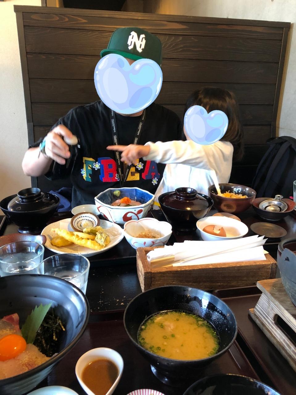 翌朝の朝食。食の細い次女がめずらしくたくさん食べててよかった(前日の夜、あまり食べなかったからかな…)