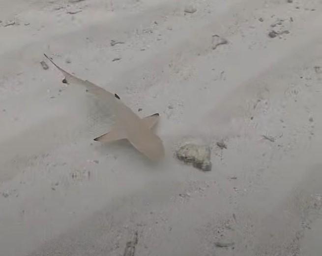 朝ビーチを歩いてレストランに向かっていたら、足首くらいの浅瀬にサメ!うれしくて動画撮影。