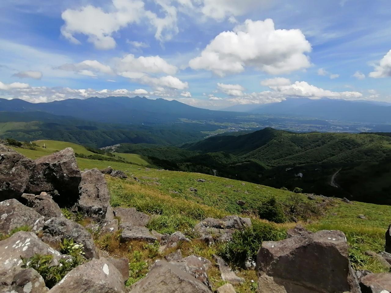振り向くと遠くの山頂に丸い建物が見えて、あっちが車山山頂だと分かったので周辺を見てから行きました。 -