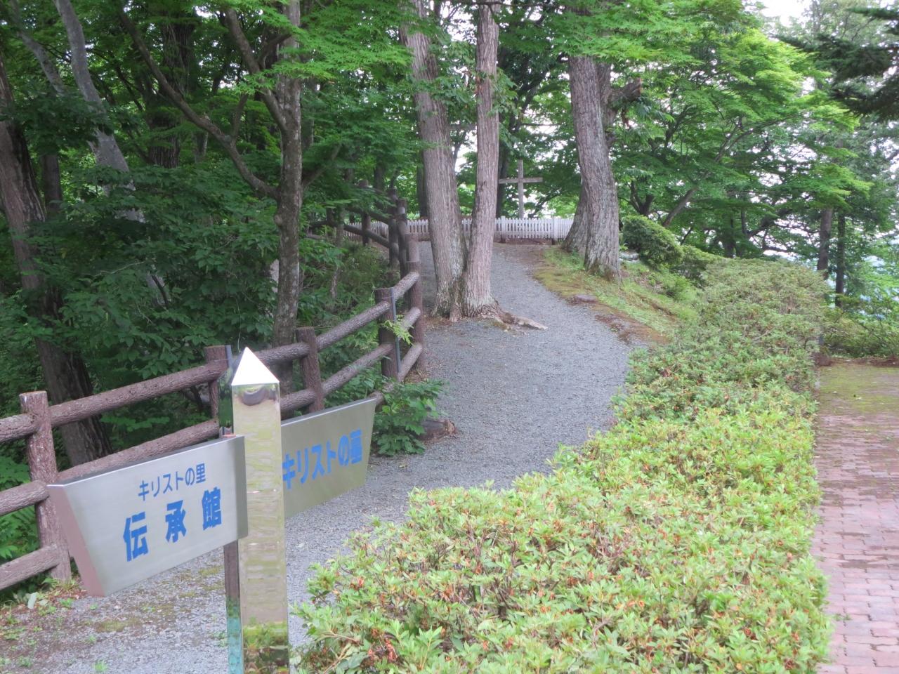 なぜここにキリストの墓があるのかを書いてあります。説明によるとイエス・キリストは21歳で来日し神学修行を重ねました。33歳の時ユダヤに戻り、伝道をしたが受け入れられず、十字架刑に処されそうになりますが、弟であるイスキリが身代わりとなります。キリスト本人は再び日本に戻り、戸来(へらい)村(現新郷村)で106歳まで生存したそうです。小高い丘の上には二つ墓があり、キリストを埋葬したものと弟イスキリの遺髪を納めた墓だということです。