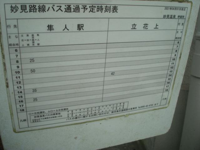 しばらく隼人駅で時間をつぶし、15:10隼人駅発のバスに乗り、妙見温泉バス停で下車しました。