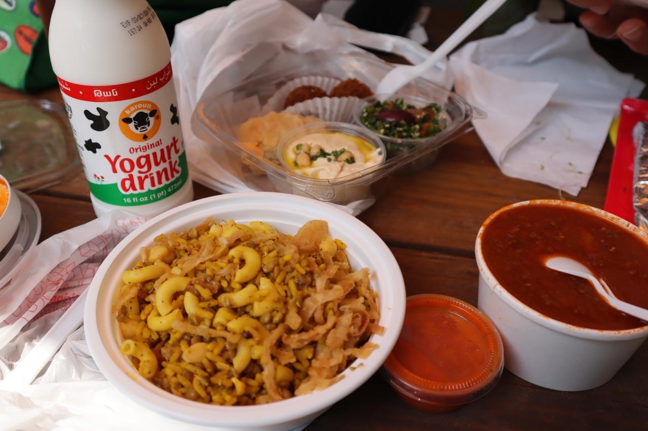 エジプト料理屋さんで、チリ、エジプトライス、ハマス、飲むヨーグルトを購入。
