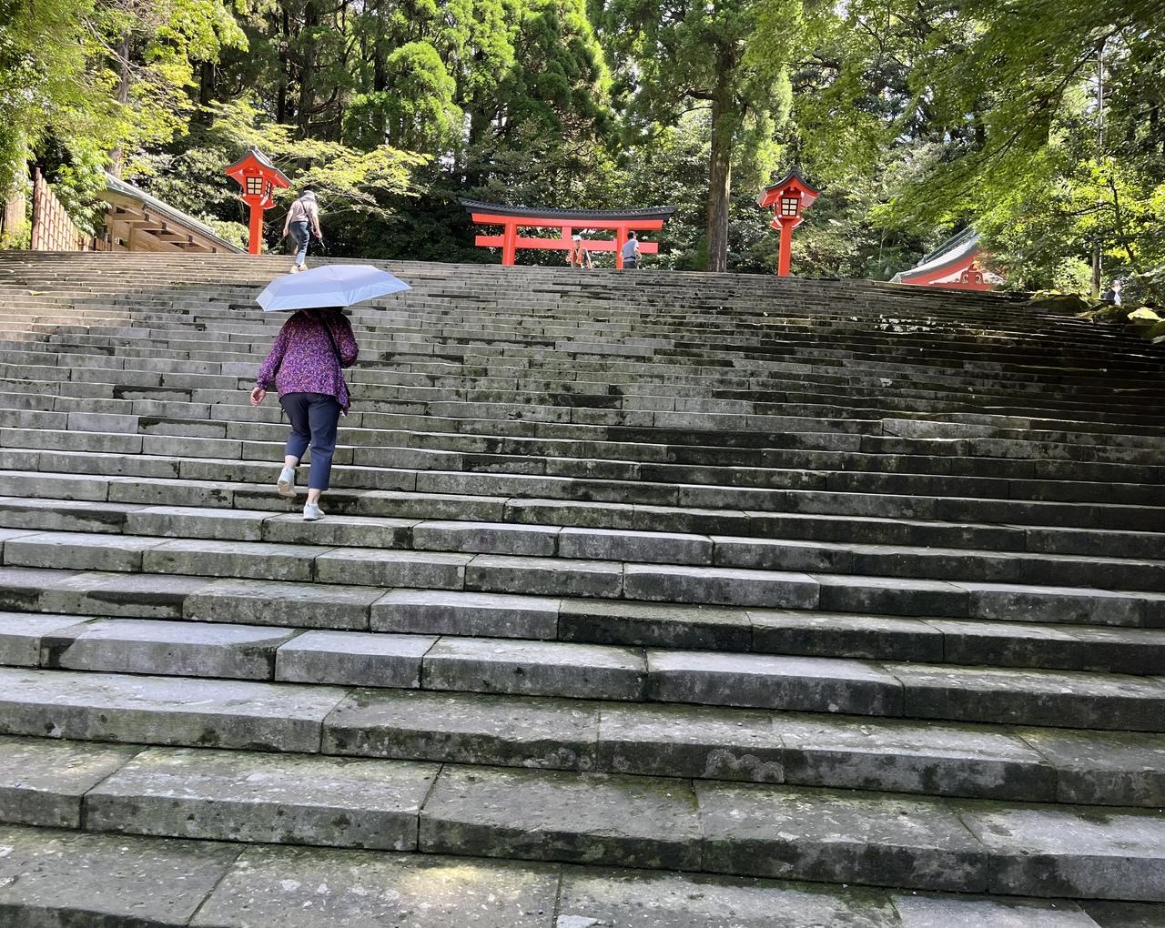 神社と言えば階段。手すりは見当たりません。