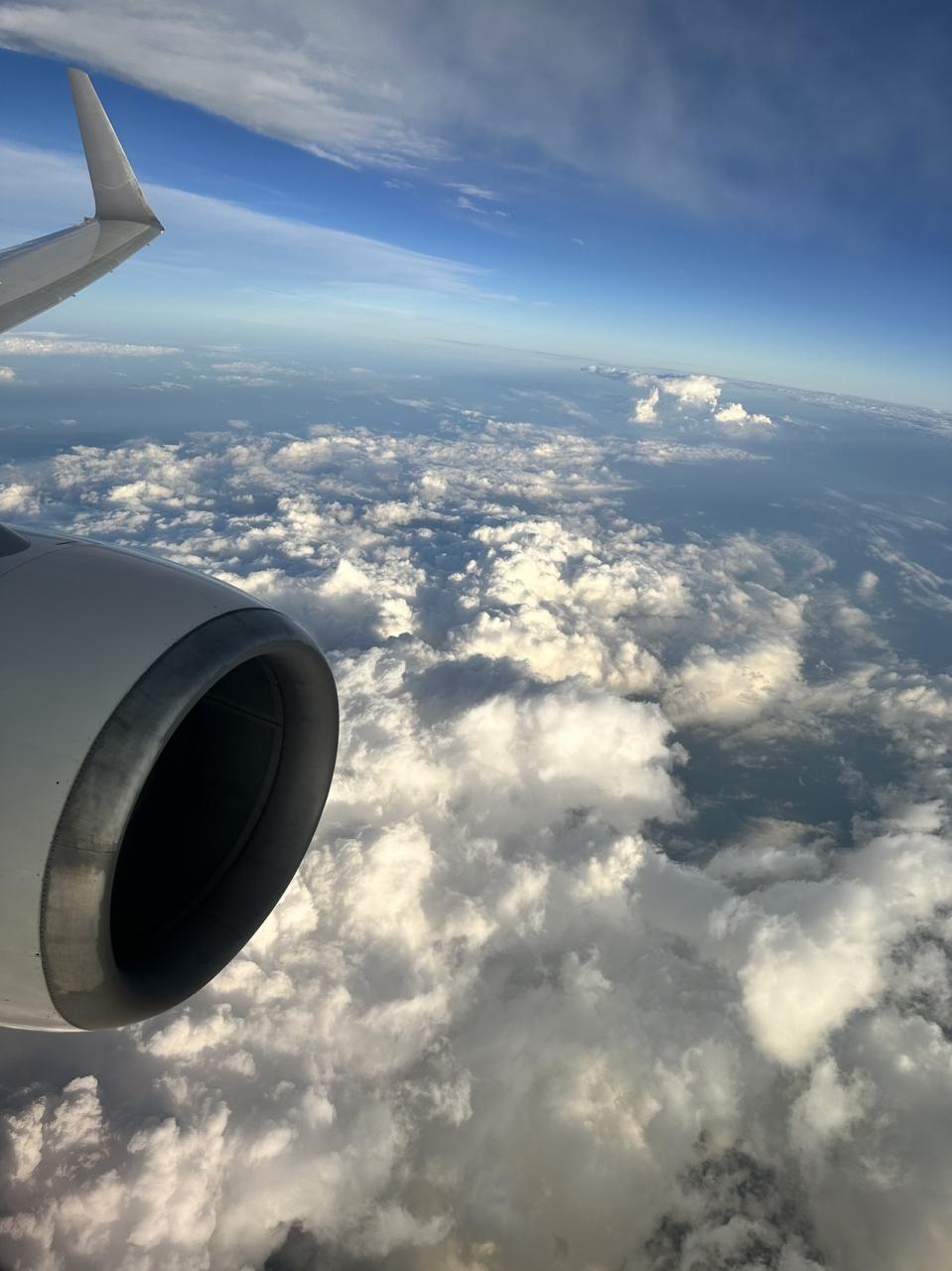 富士山上空に差し掛かりましたがあいにく雲間に隠れて眺めることができませんでした。