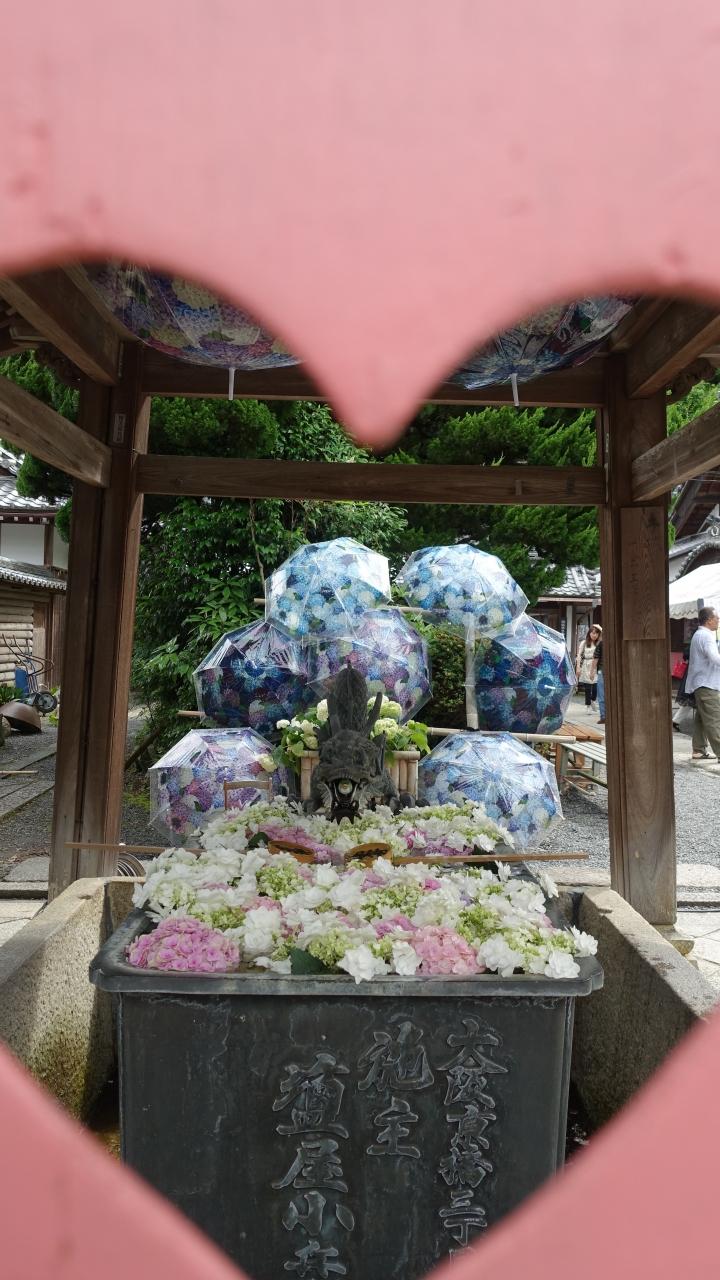 一番のお目当ては「京都人の密かな愉しみ BLUE修行中 祇園さんの来はる夏」の冒頭に出た楊谷寺の紫陽花。TVで見た時は境内は一面の紫陽花に見えたが、実際はいたる所で透明のビニール傘に描かれた紫陽花が隙間を埋めていた。今ではポピュラーになった「花手水」はこの寺が発祥らしい。地蔵院と光明寺は「同 燃える秋」で、ゆっくり紅葉を楽しめる穴場として紹介された。紅葉の名所は新緑の名所でもある。雨上がりのしっとりした楓の緑が鮮やかだった。善峯寺は桜で有名だが、今回は紫陽花が満開だった