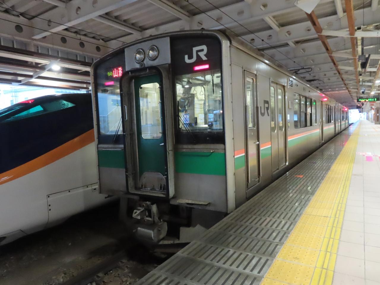 次の瞬間、さっき見かけた山形行きの電車に向かって走り出していました。この時点でできることは唯一これに乗ることだけ!オーマイガー…です。