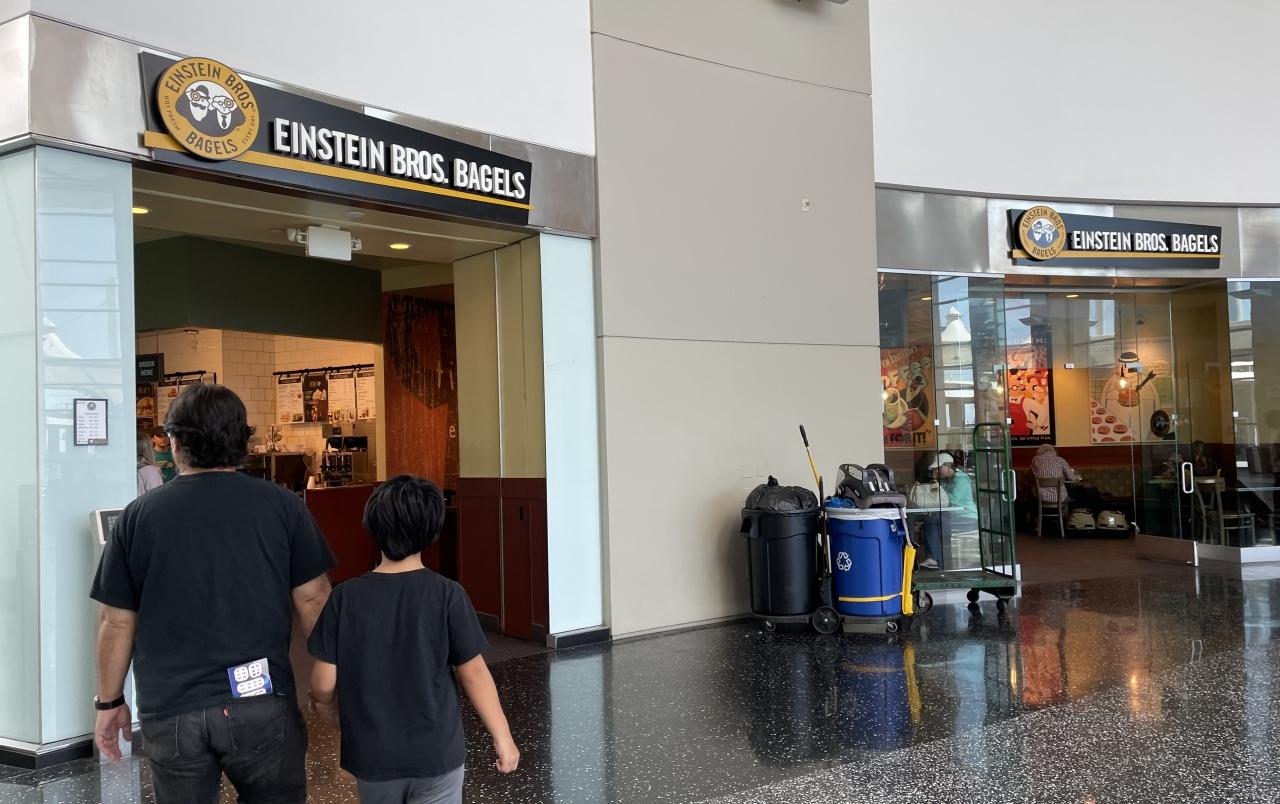 ベーグル屋Einstein Bros. Bagelsに入る。そういや今回の旅ではニューヨークのベーグルを食べそびれていたので、ちょうどよかった。