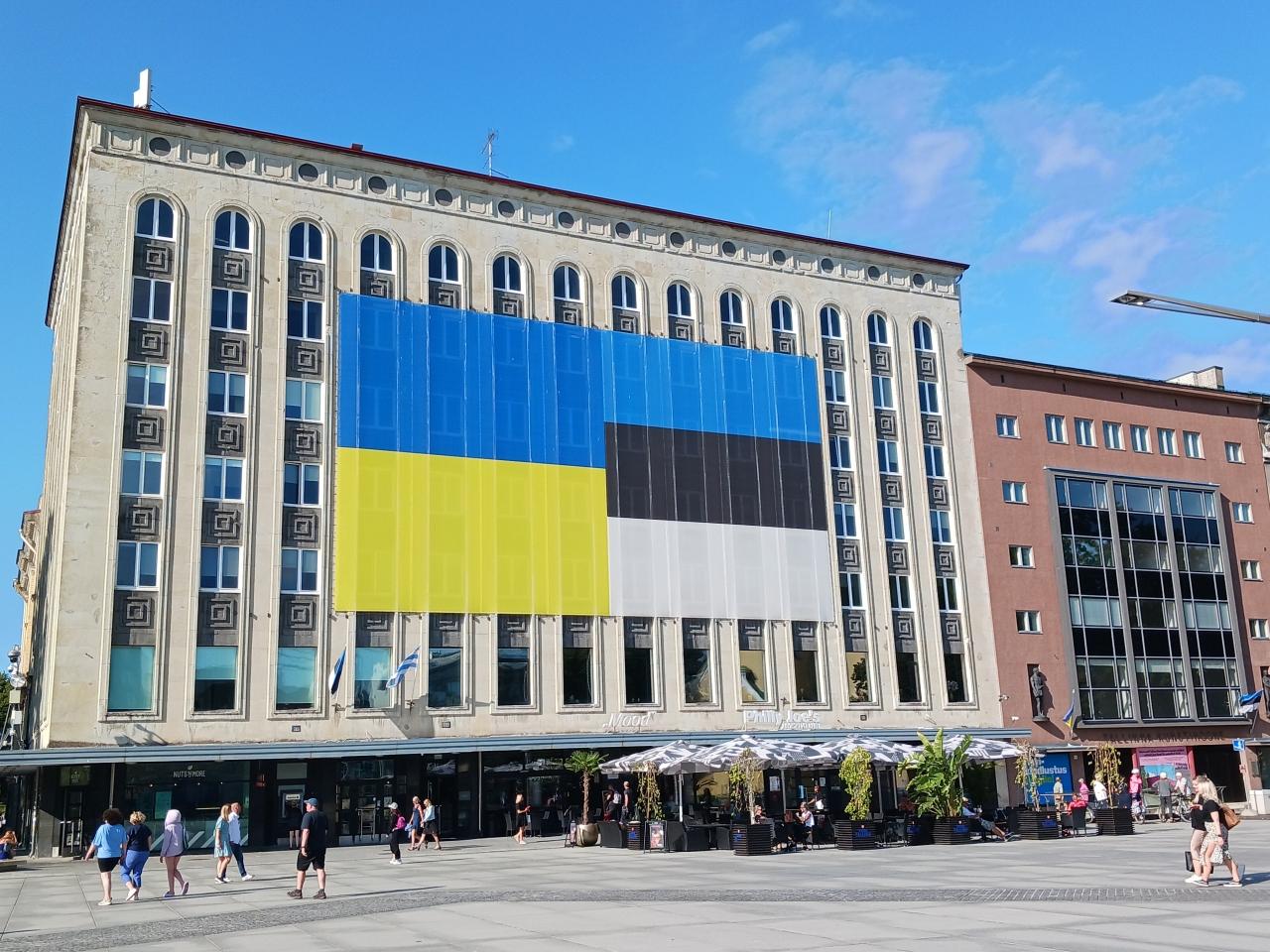 市の施設だと思うのですが、エストニアとウクライナの国旗をマージしたものが貼られていました。