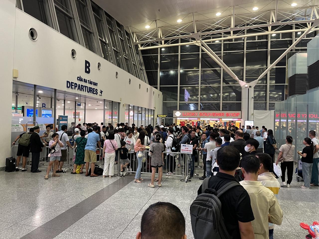 22時のノイバイ空港国際線保安検査前。深夜便が多く大変混雑しています。