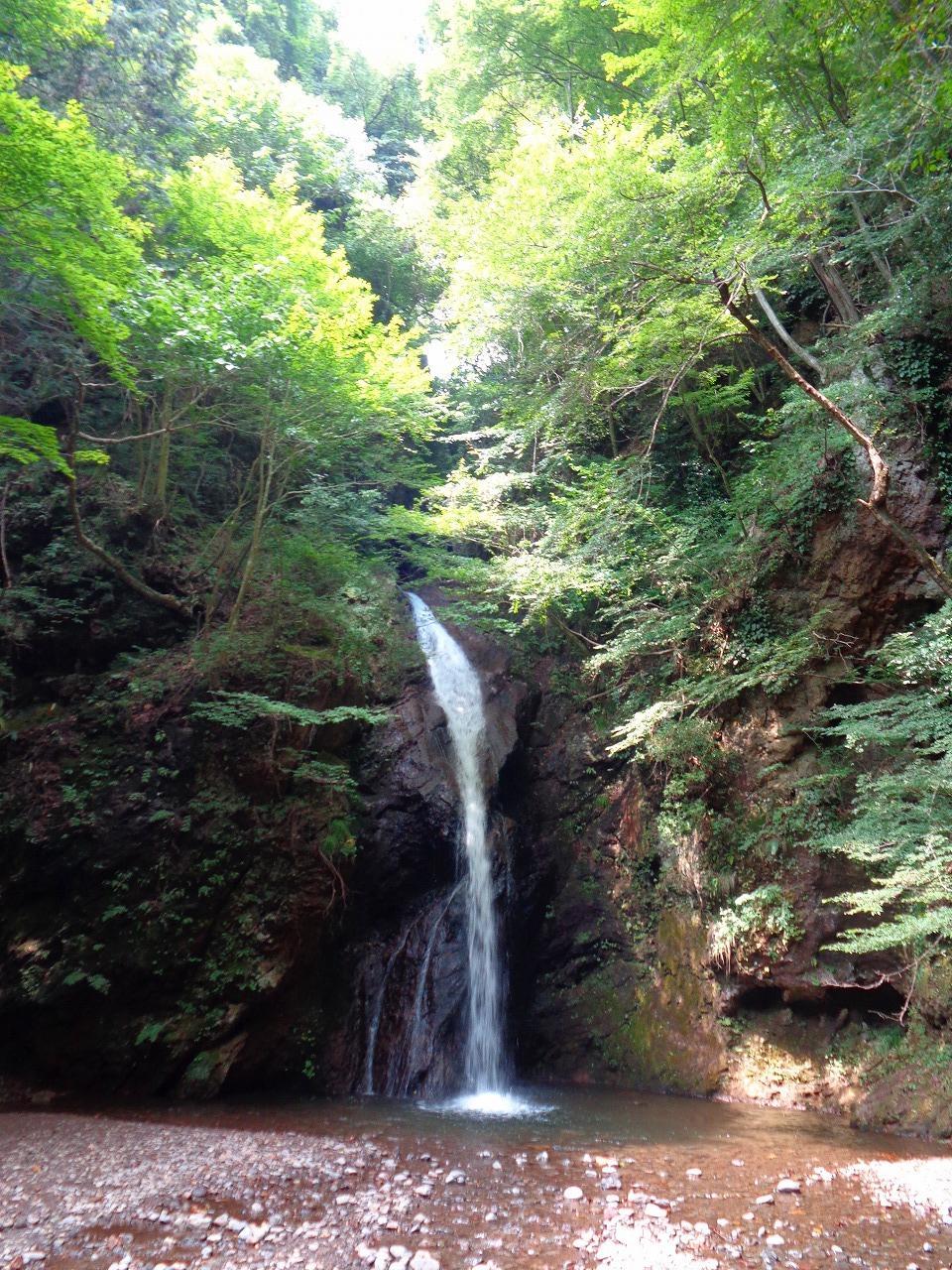 この滝は岩だらけとされる岩櫃山から流れる水量の多い滝で、コンパクトながら綺麗な箱庭のような滝壺に落ちる3段の滝。