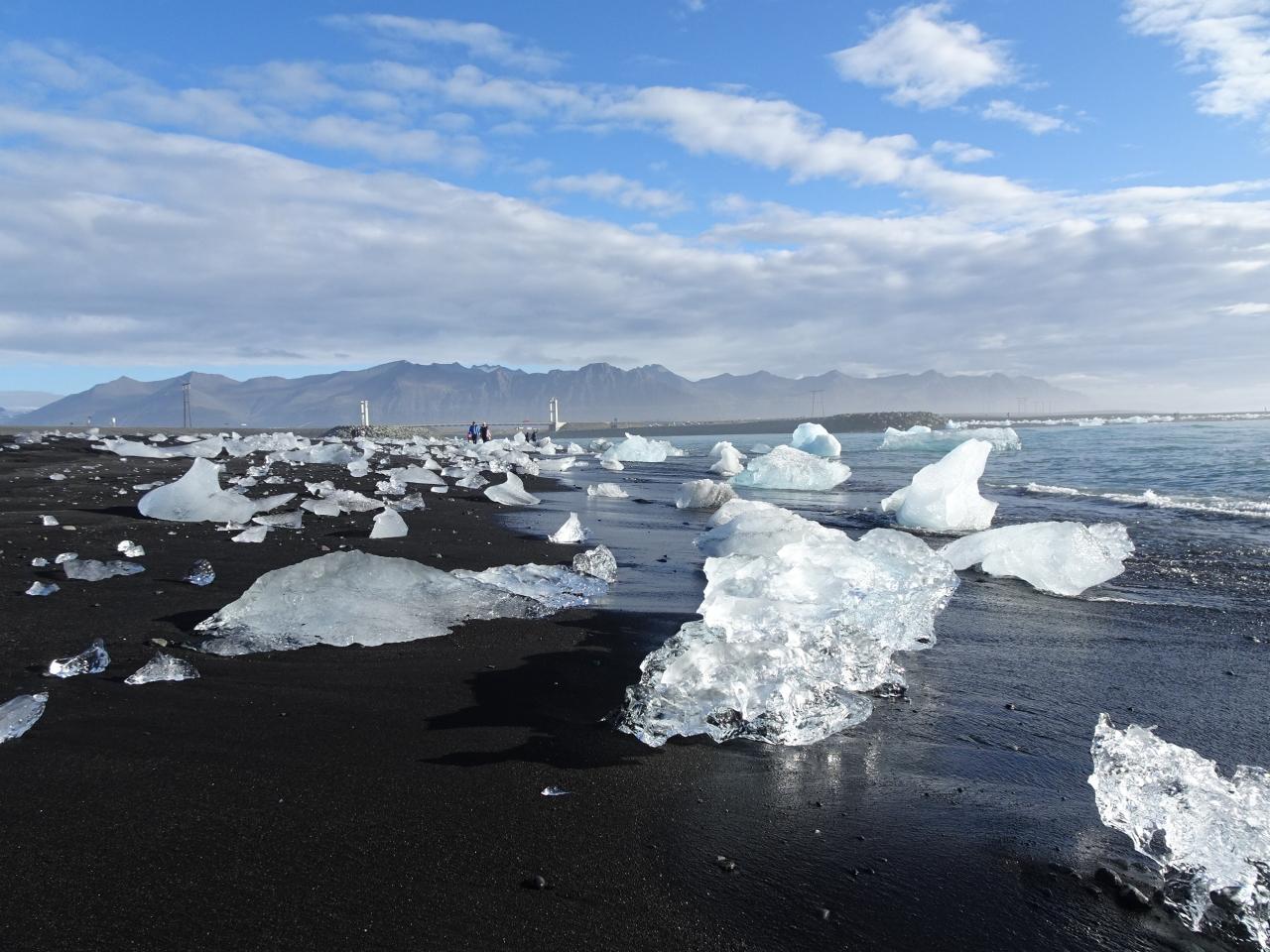 砂浜に氷塊が散らばっていて綺麗♪