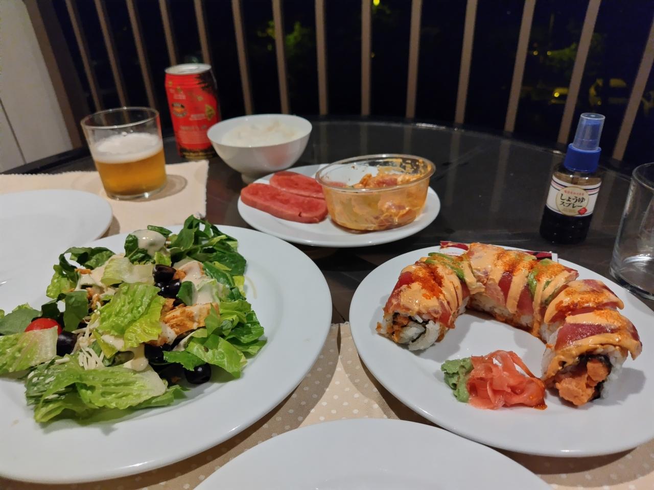 部屋で簡単晩ごはん。