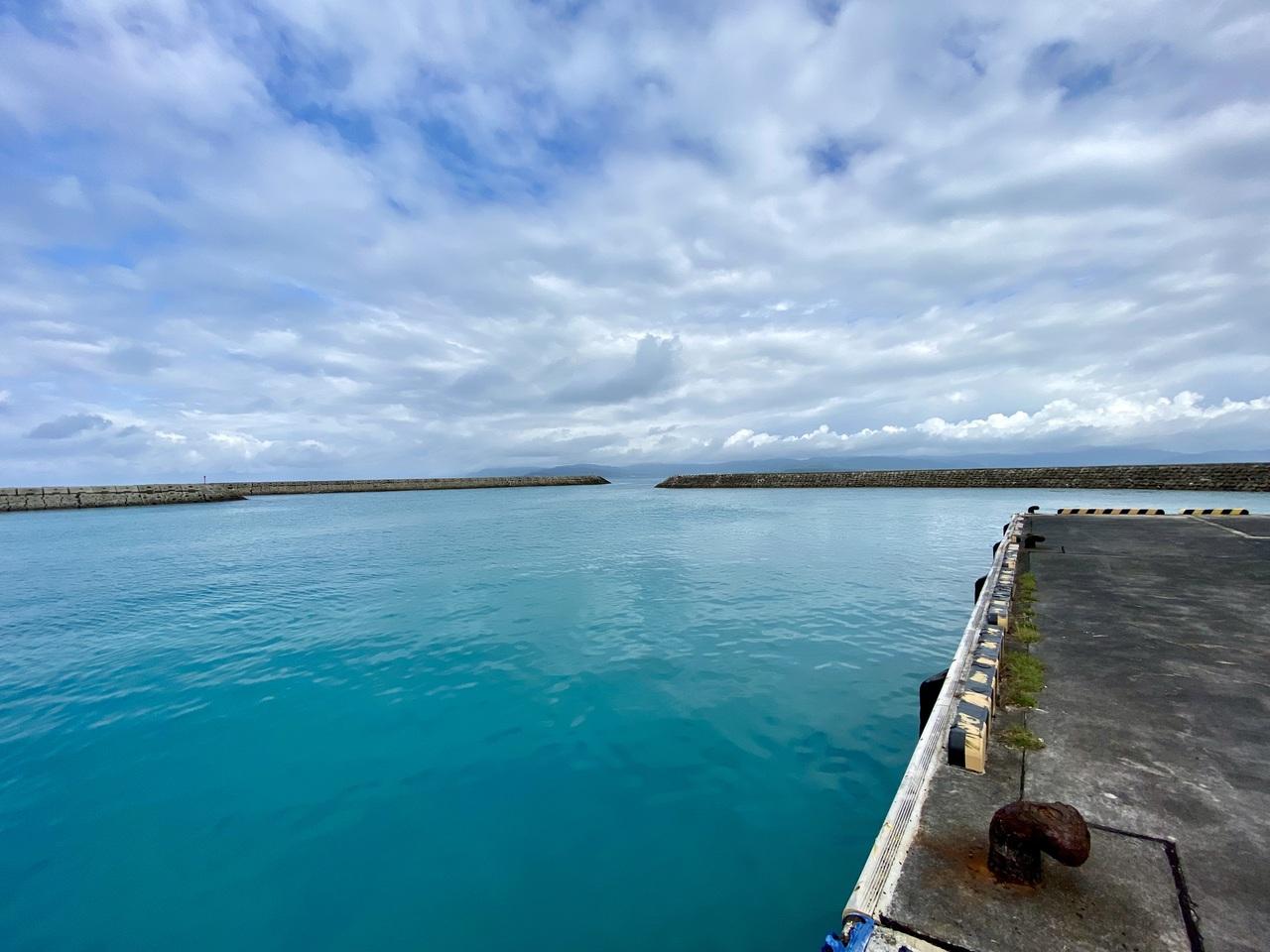港だけど透明度が良くて水が青いです。