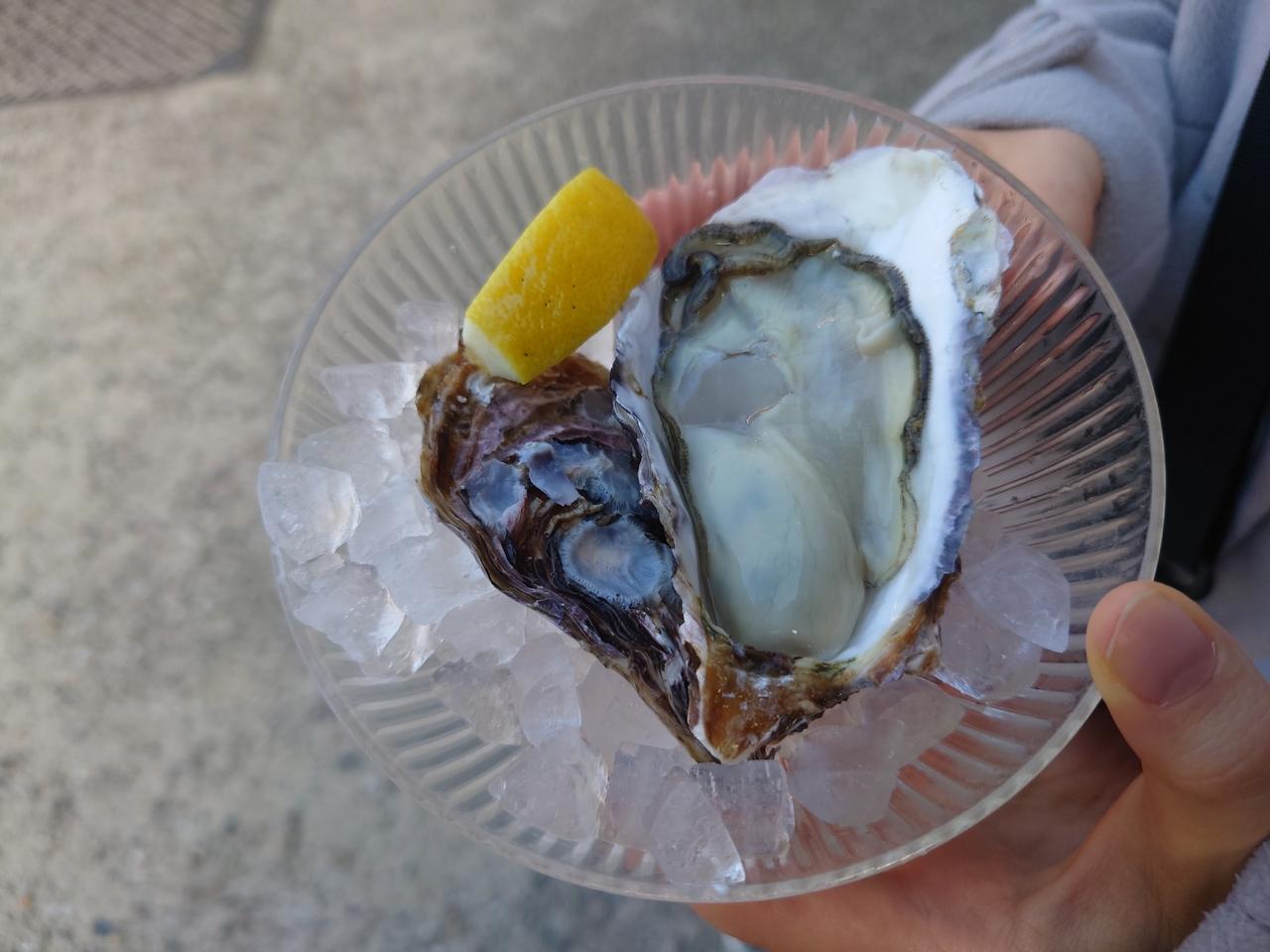 厳島神社を後にしてお散歩を続けている途中、生牡蠣のお店を見つけました。
