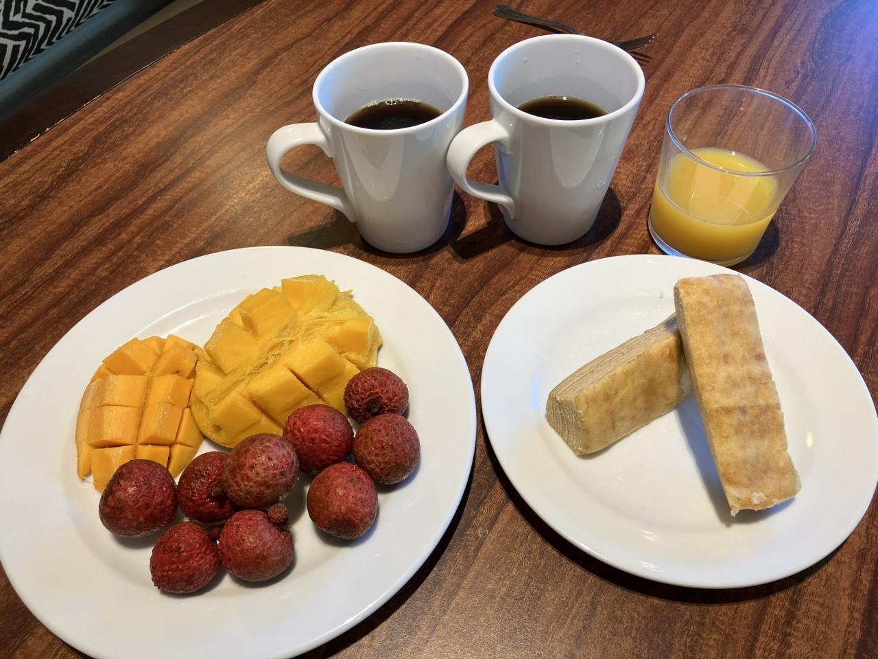 昨日買ったマラサダ・スコーン・フルーツで朝食 -