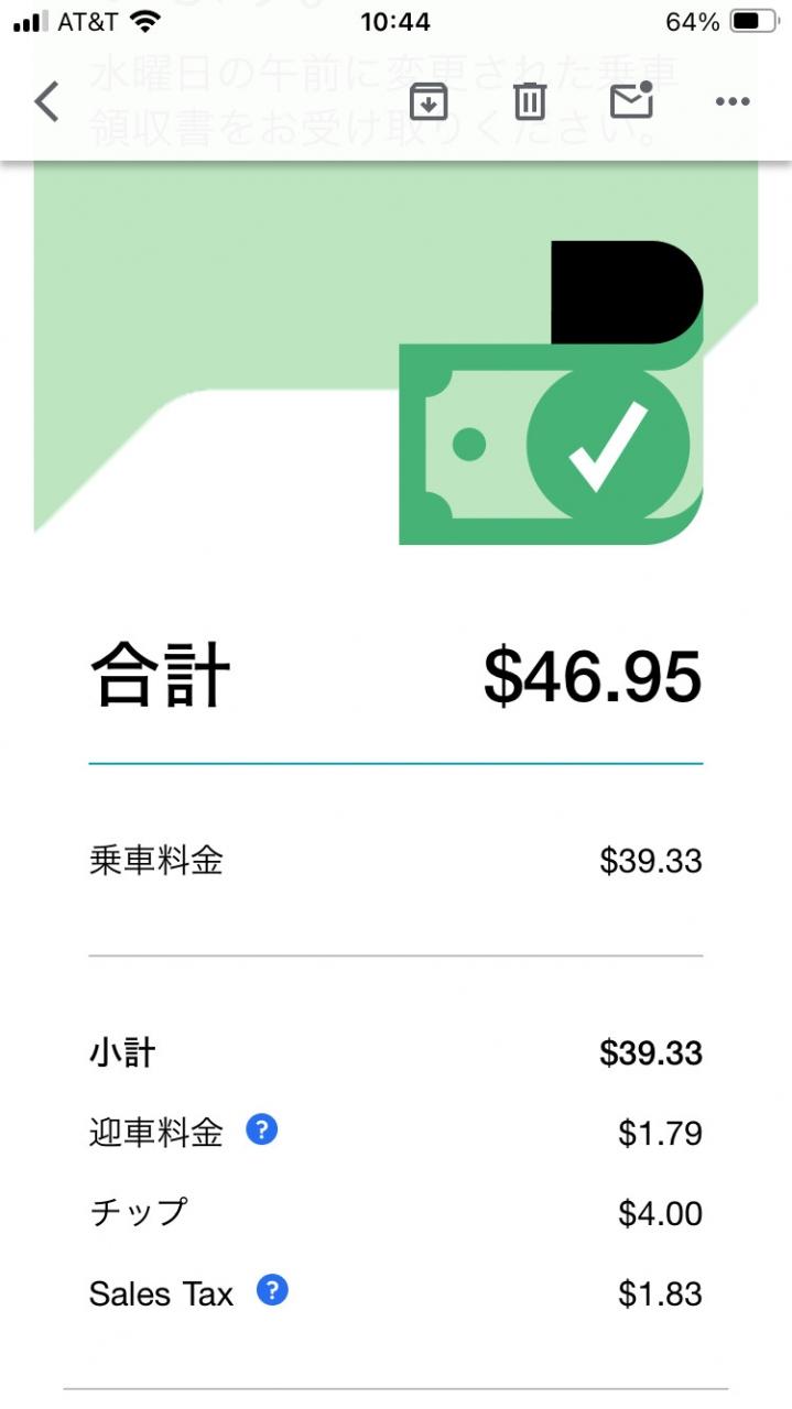 往路共にチップ込みで45ドル前後でした -