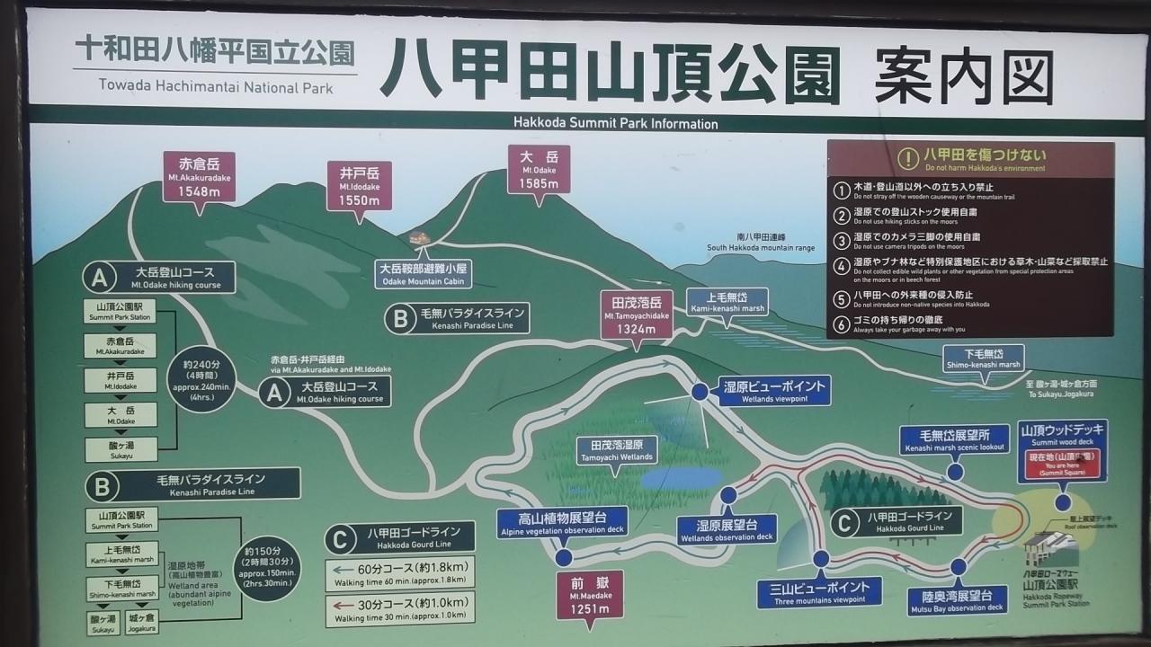 高原バス停にあった地図 北海道から大間に上陸、仏ヶ浦、恐山、青森、八甲田山と歩いてきました