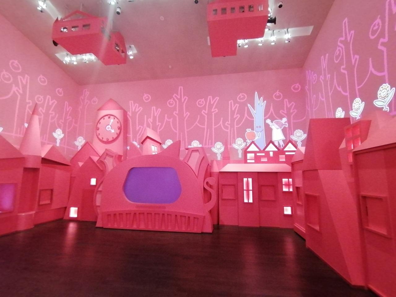 黒猫シアターはエントランスから撮影禁止です。10分位で対話型の映像だったので特に小さい子供は指名されていました。 -
