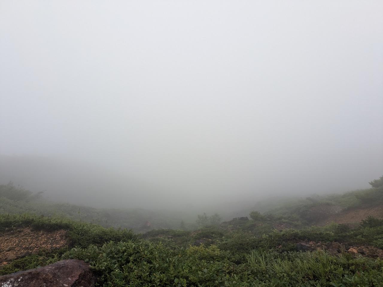 そしたら途中で雨が霧に変わり、辺りは真っ白