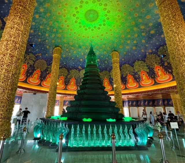 エメラルドに輝く仏塔の上部を見ると…