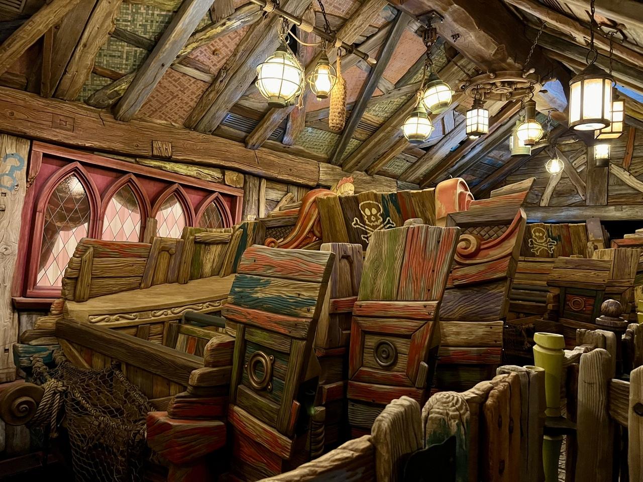 ピーターパンのネバーランドアドベンチャーは、激しいライドのようでランドのピーターパン空の旅とまた違った内容ですね。