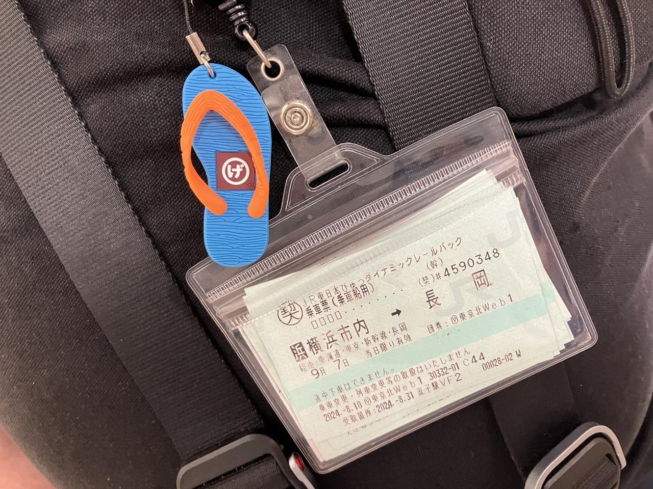 HAPPINさんのカード入れは、クルーズと同じパウチに切符をぶら下げて