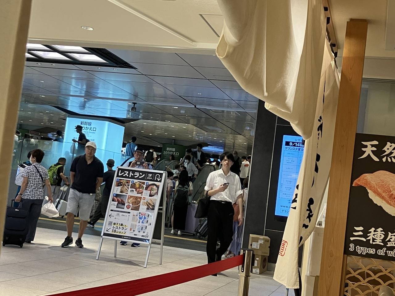 店の中から新幹線改札口を見る