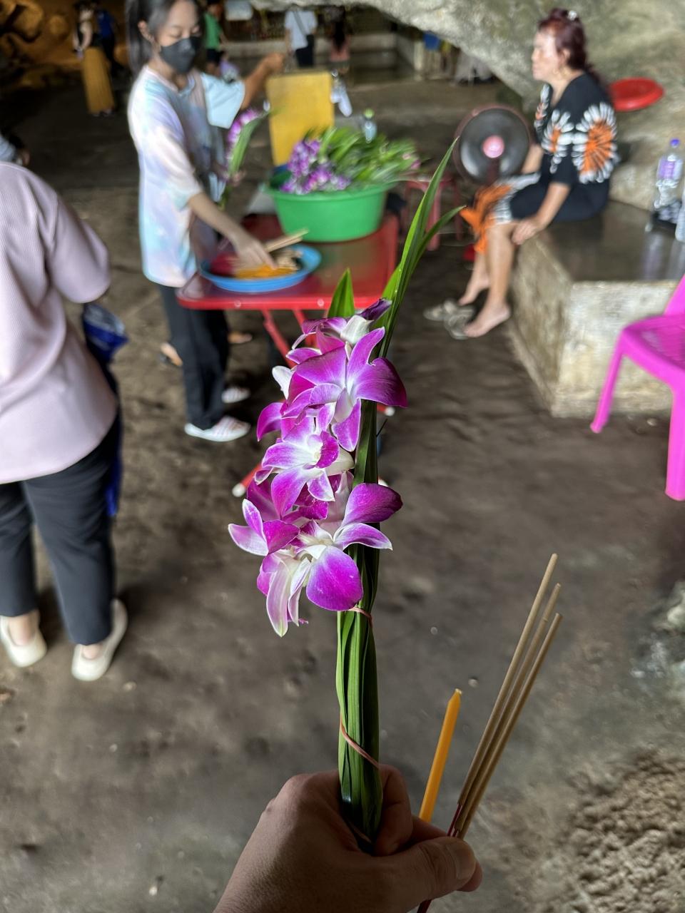 御布施(タムブン)して参拝(ワーイプラ)セットを受け取る。