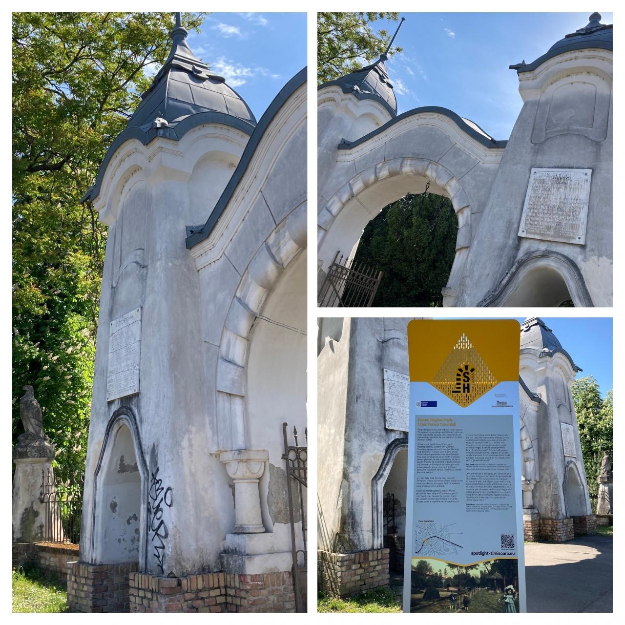 ティミショアラの公園、Parcul Regina Mariaの東入口門。この公園の近くに複数のアール・ヌーヴォー建築があります。天気が良くなって暖かくなってきました。この日の日中は夏の暑さになりました。門が造られたのはは1910年、作者はLaszlo Szekely。