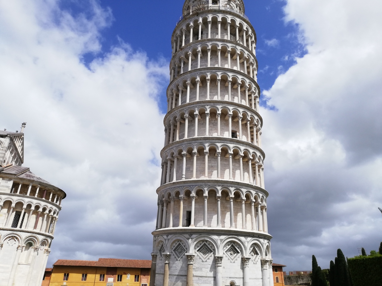 斜塔の近くに行くと角度によっては、真っ直ぐ立っているように見える。