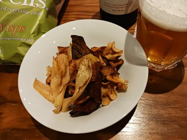 TyrrellsのVeg crisps(パースニップ、ビーツ、人参のクリスプ)