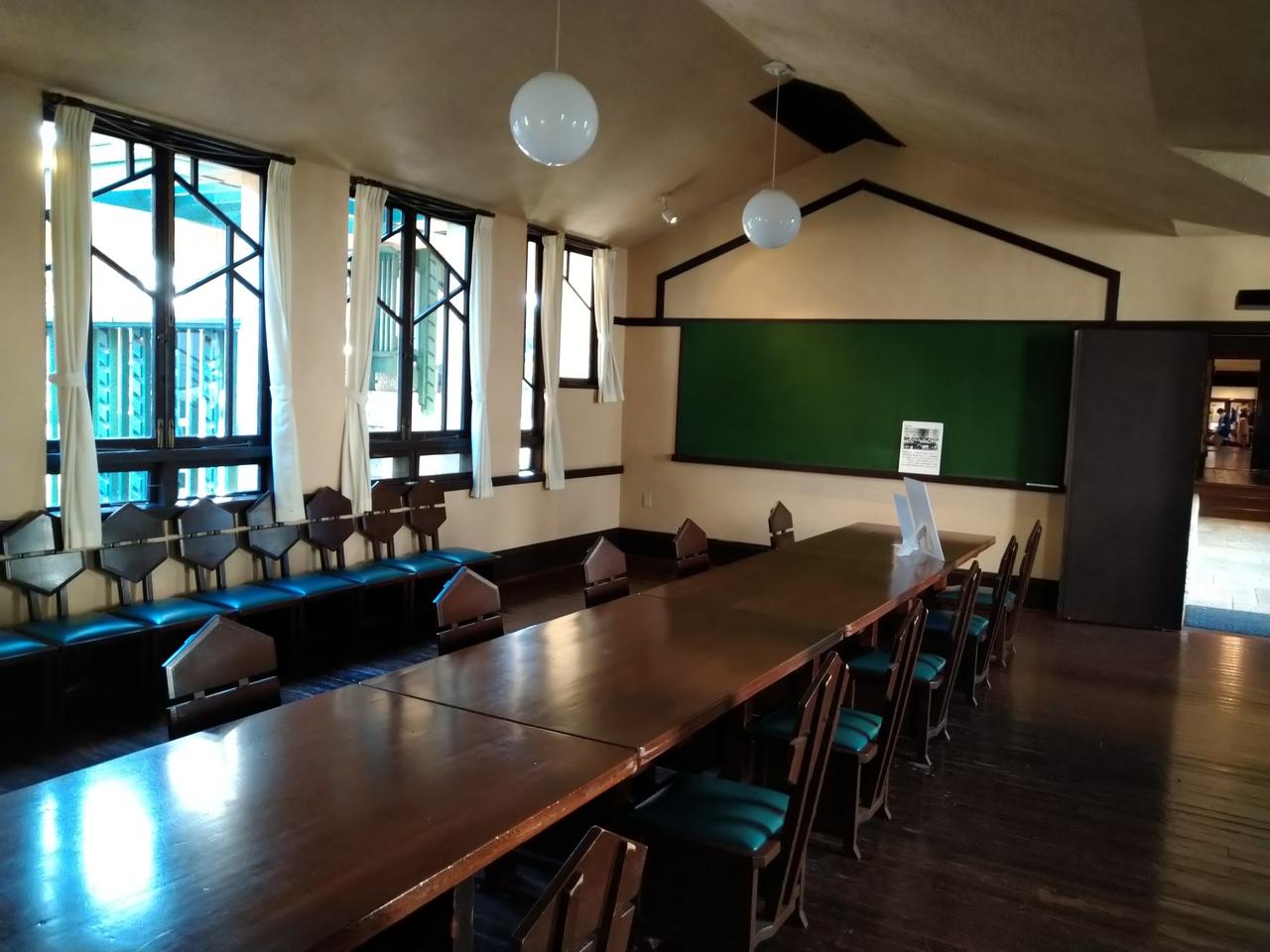 施設内(中央棟・東教室棟・西教室棟・講堂)の見学は、通常見学(10時から16時まで・最終入館時間15時30分)および毎月第3金曜日のみ夜間見学(18時から21時まで・最終入館時間20時30分)があり、今回は通常見学の施設内喫茶室が利用できる喫茶付見学(800円・コーヒーまたは紅茶および焼菓子付き)として喫茶室での休憩をはさみながら、施設内各所を写真撮影して廻り楽しむことができました。