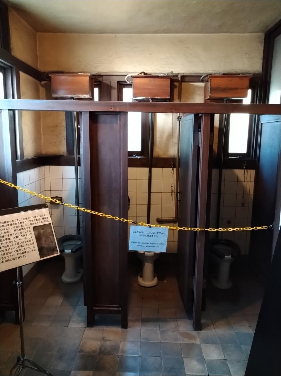 現在は、ベニヤ板の仕切りが取り外されて1927年(昭和2年)に竣工した当時のトイレのようすがそのまま展示されています。自由学園明日館 名所・史跡