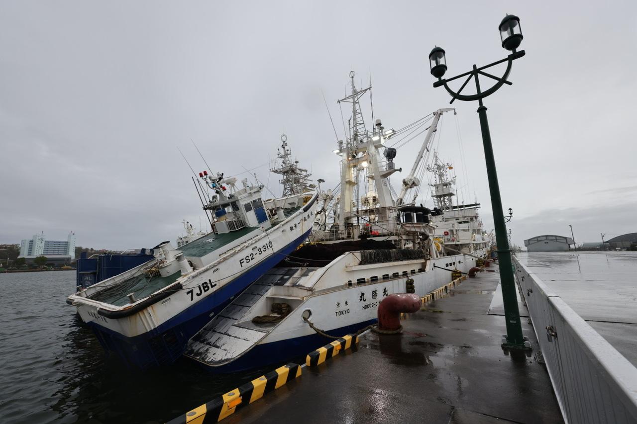 釧路港には、オホーツク海方面へのトロール船が集まっている。