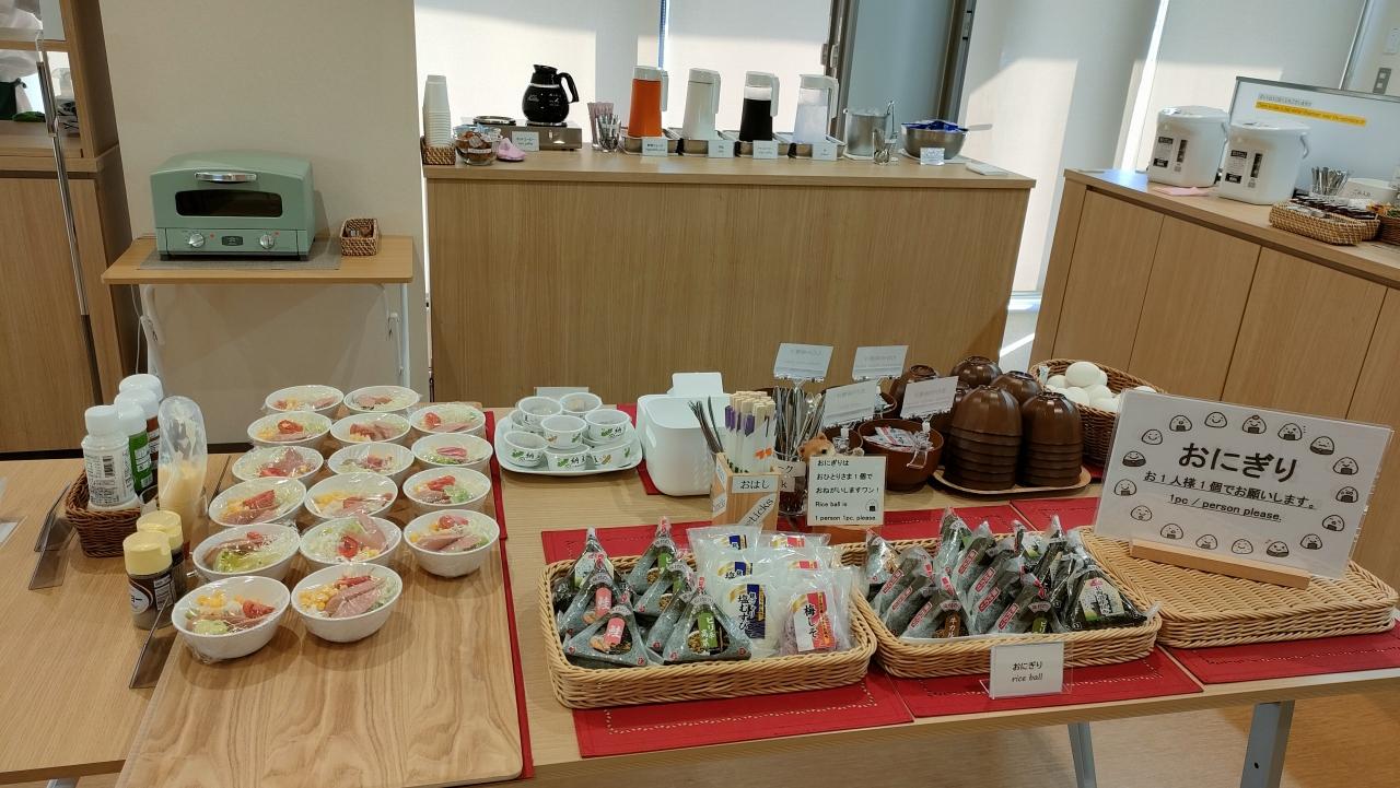 無料の朝食会場へ