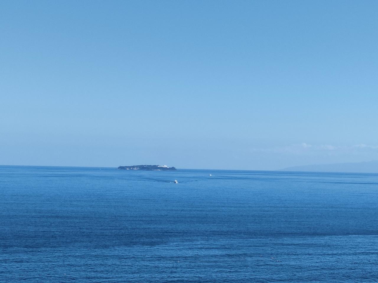 正面には初島、その右にかすかに伊豆大島が見えました。