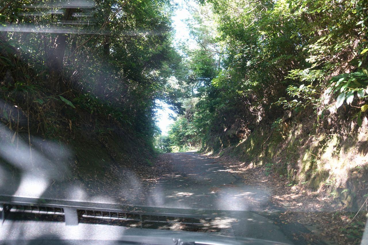 鳥の巣展望台から県道に戻らず、さらに奥へと分け入ってみました。一応観光マップに書いてある名所ではあるんだけど、道路は草木に浸食されかけていました。