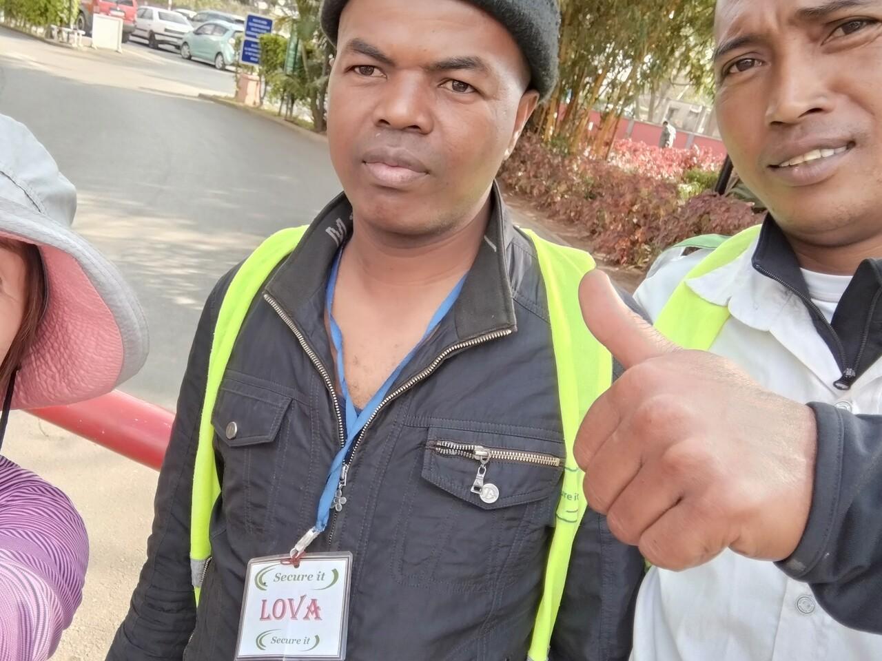 ホテルの敷地に戻ったとき、警備員さんと撮影。