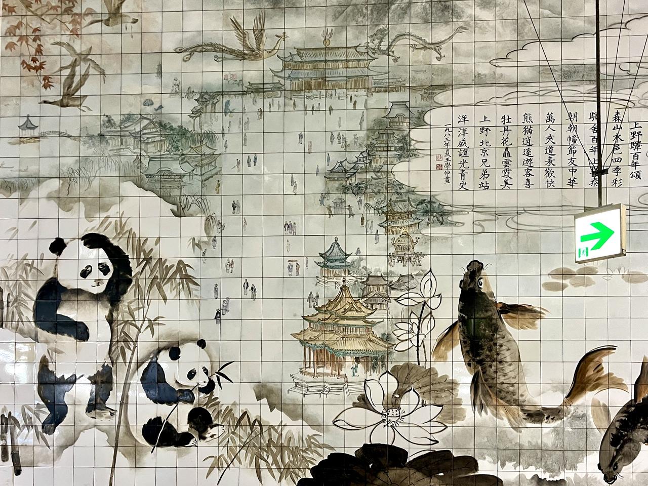 つくばエクスプレスの浅草駅。壁の絵が面白い。